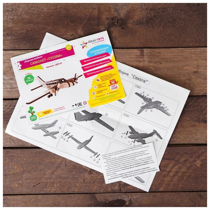 | Дополнительная информация | у собранной модели вращаются колеса и винт; игрушку можно раскрасить акриловыми или гуашевыми красками |