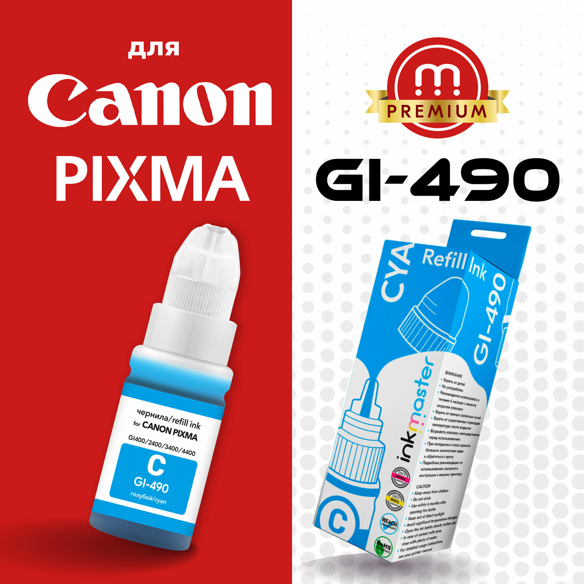 10 цен на Чернила краска для принтера Canon PIXMA GI-490C (0664c001) G1400, G1410, G1411, G2400, G2410, G2411, G2415, G3400, G3410, G4400, 7000стр, голубой 70мл