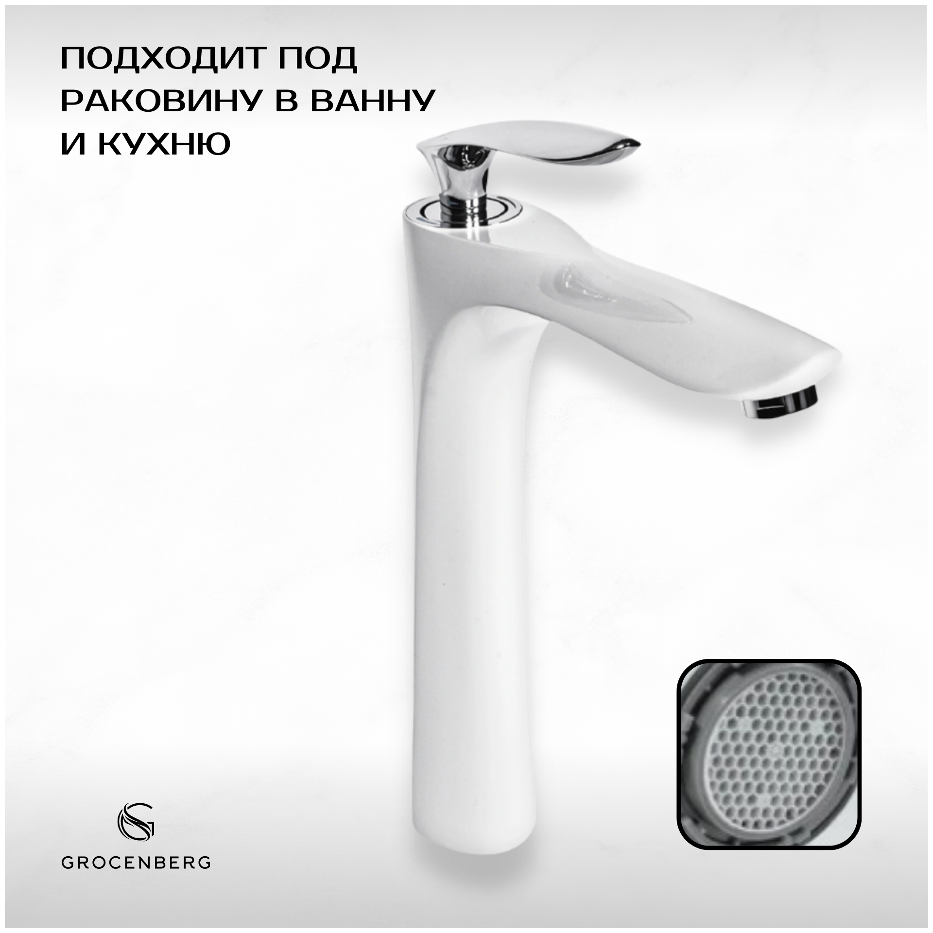 Отзывы на Смеситель для раковины ванной умывальника кухни белый Grocenberg GB3001WC