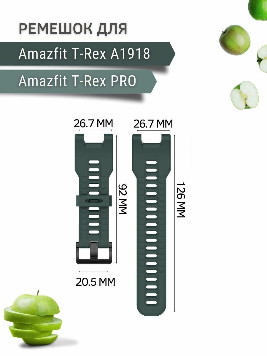 Ремешок PADDA для Amazfit T-Rex (A1918) / T-Rex Pro, силиконовый, темно-зеленый информация: