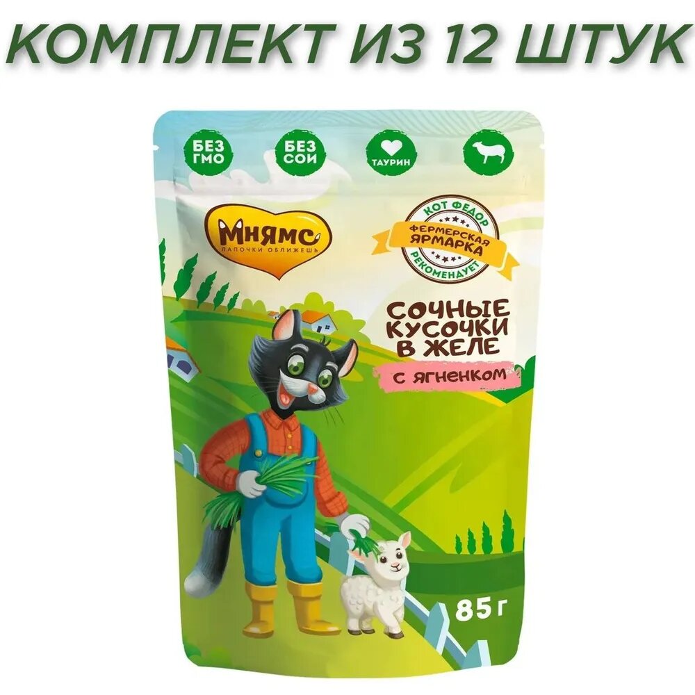 Мнямс Фермерская ярмарка Пауч для кошек кусочки в желе с Ягненком 85 гр x 12 шт.