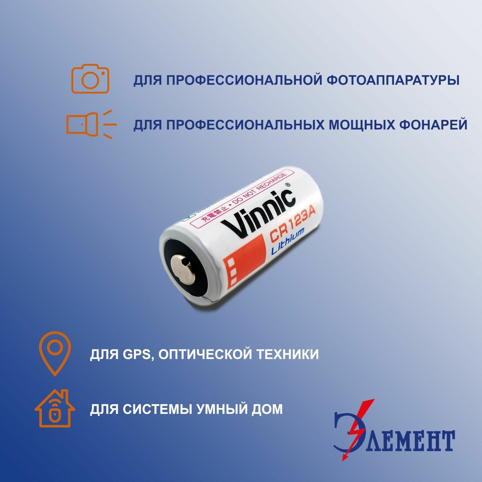 Батарейки (10шт) VINNIC CR123 3В литиевые информация: