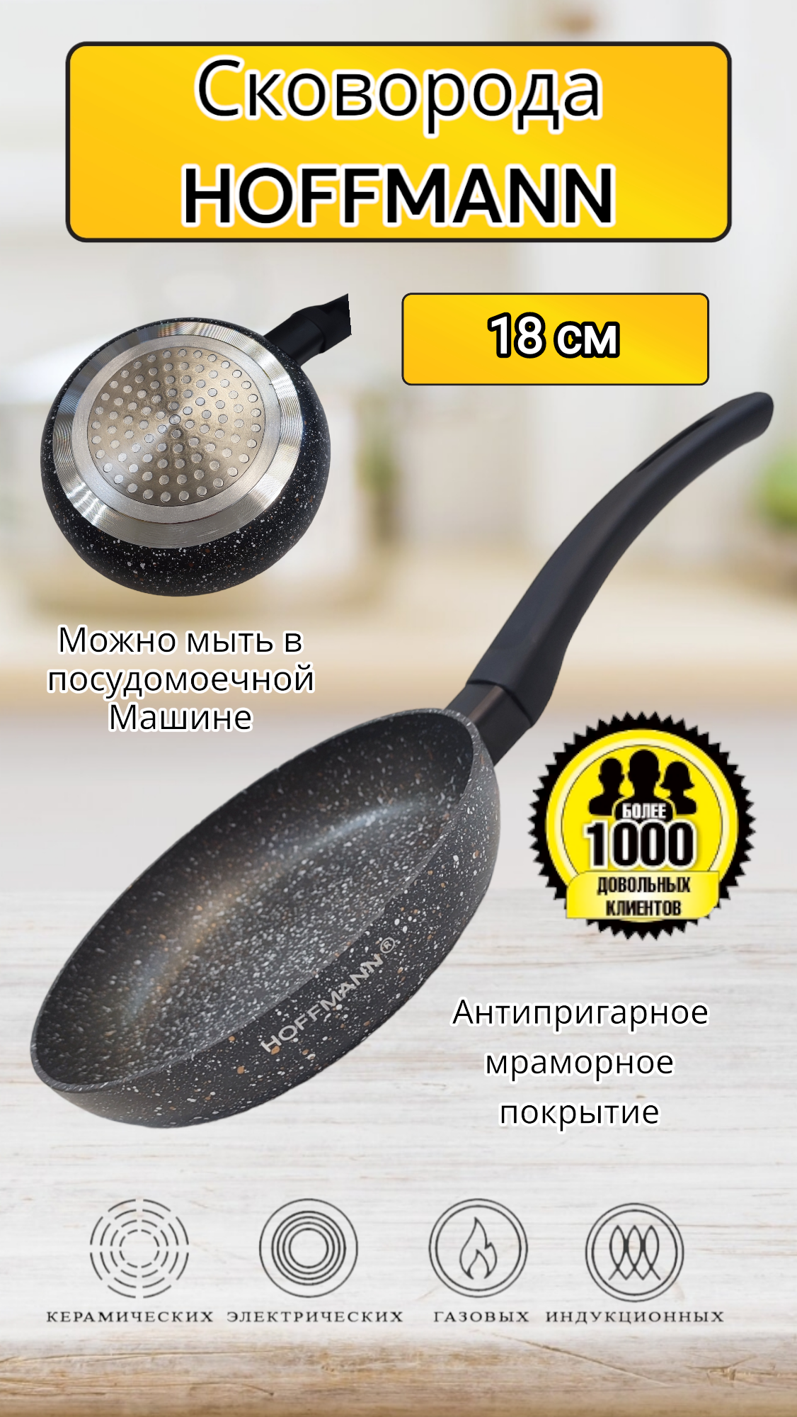 Сковорода HOFFMANN 18 см антипригарное покрытие информация: