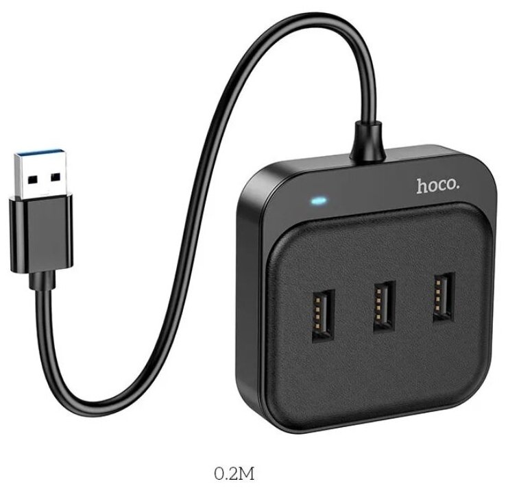 USB-концентратор HOCO HB31, Easy, 4 гнезда, кабель 1.2м, цвет: чёрный