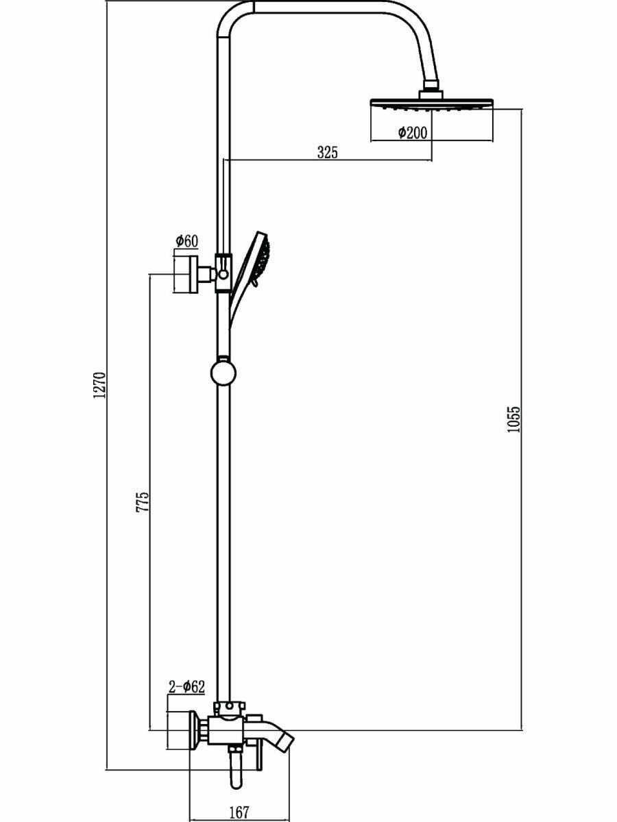 | Комплектация | верхний душ / держатель лейки / душевая стойка / излив для набора воды / лейка / ручной душ / Смеситель / шланг / эксцентрик / держатель / крепеж / штанга |