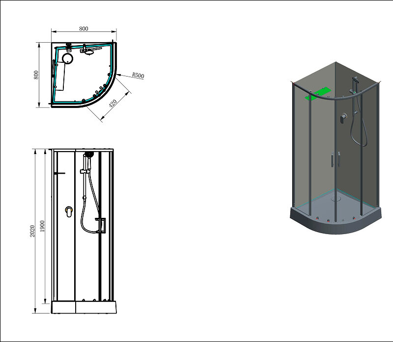 | Комплектация | душевая лейка, поддон, полки |
