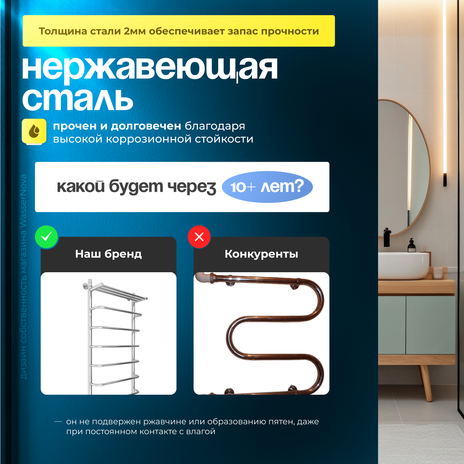 Полотенцесушитель лесенка с полкой водяной 500х1000 мм информация: