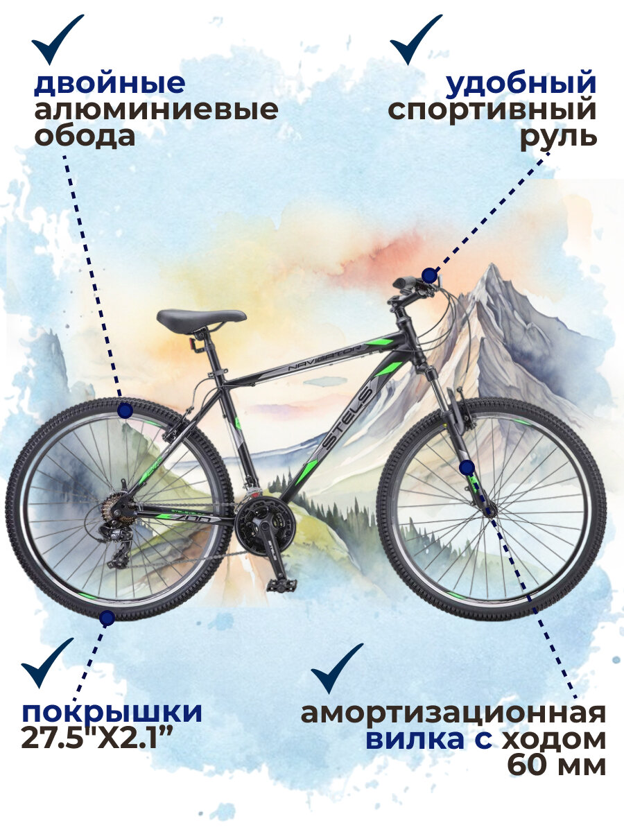 Отзывы на Велосипед горный 27,5" Stels Navigator 700 V F020 21 скорость 2023 года рама 21" чёрный матовый