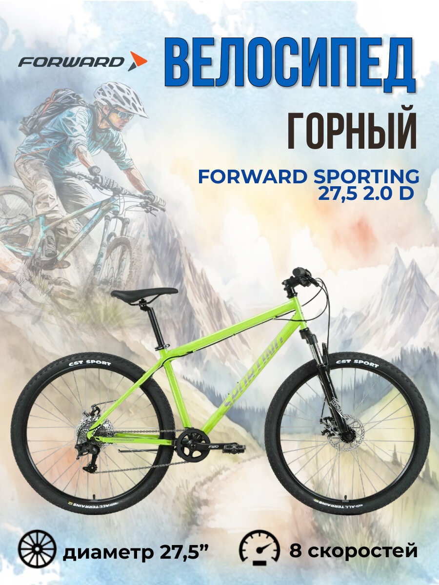 Велосипед горный Forward Sporting 27,5 2.0 D рама 17" ярко-зеленый/серебристый 2023 года