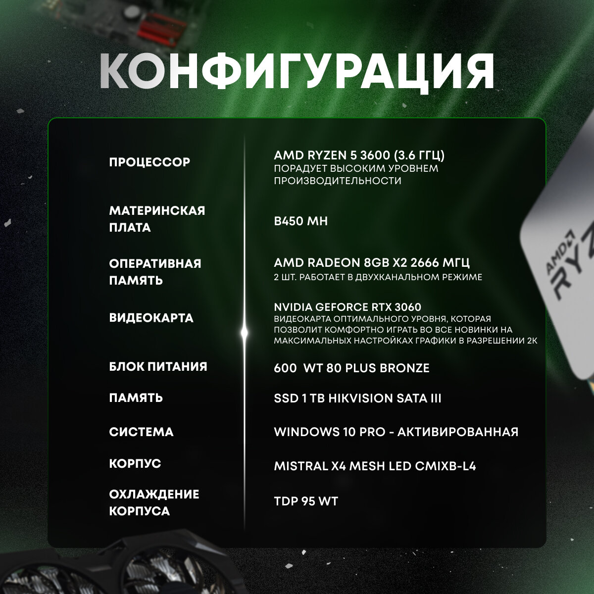 10 цен на Системный блок AMD RCR (AMD Ryzen 5 3600 (3.6 ГГц), RAM 16 ГБ, SSD 1 ТБ, NVIDIA GeForce RTX 3060 (12 Гб), Windows), 1, темно-синий