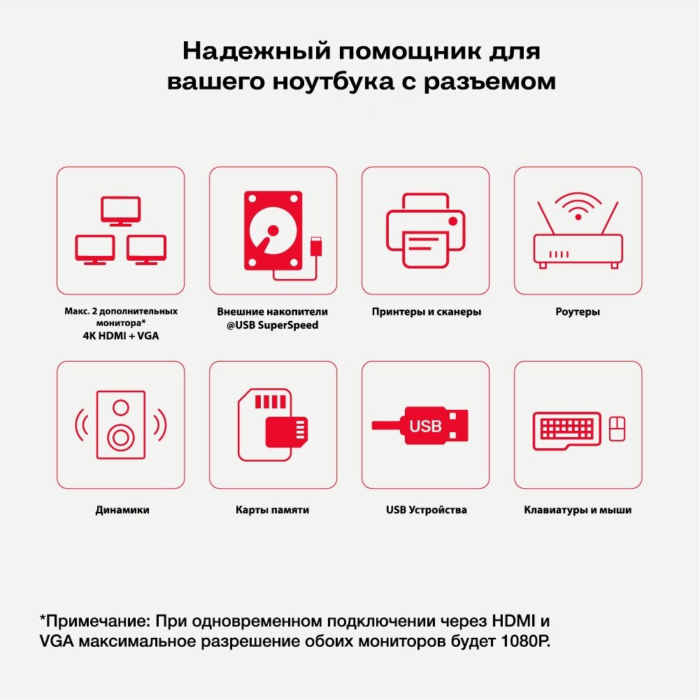 10 цен на USB-концентратор (хаб) Unitek 9 в 1 (3 x USB A, USB C PD, 4K HDMI, VGA, RJ45, SD/Micro SD), цвет серый (D1026B)