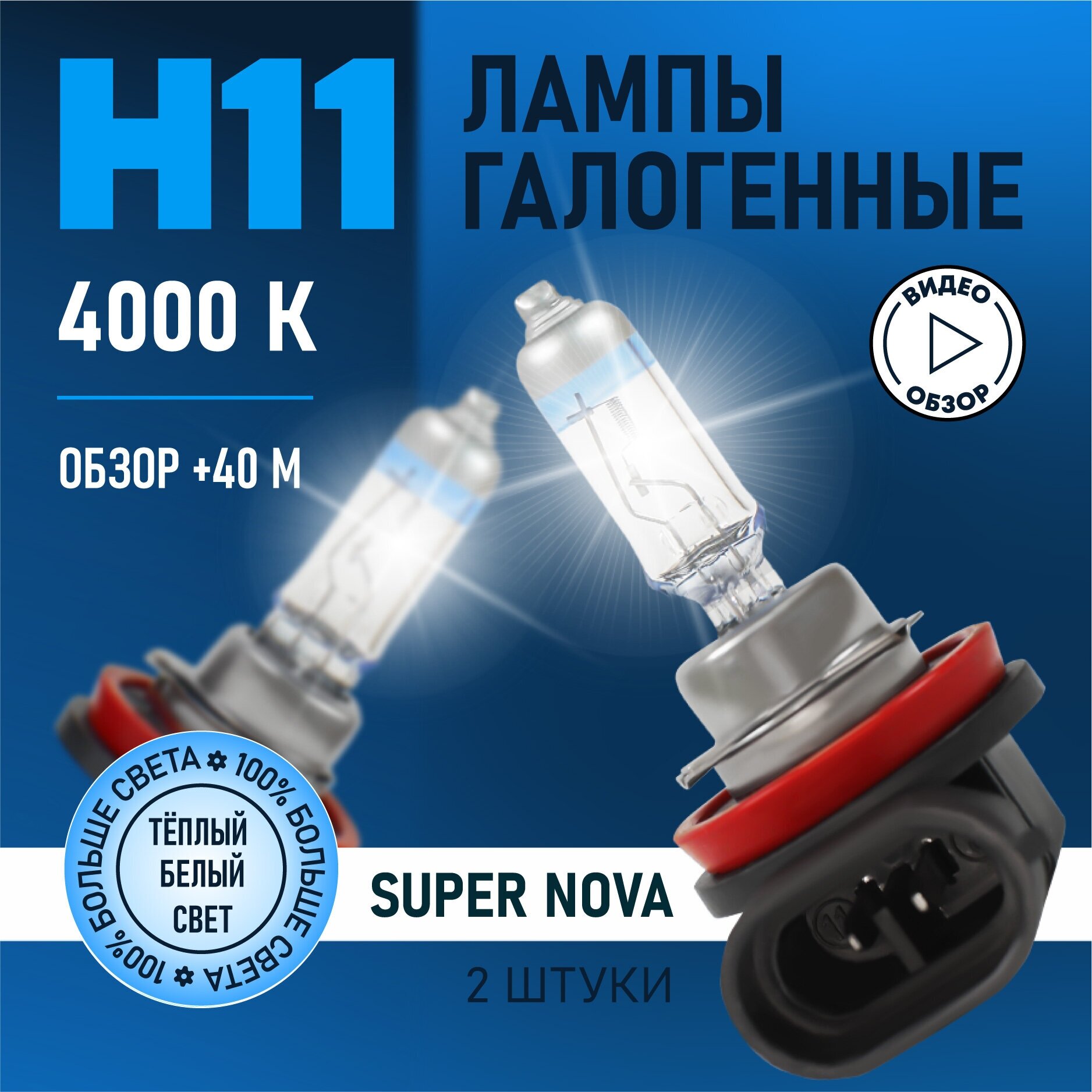 10 цен на Автомобильные лампы галогенные H11 Super Nova восход, +100% света, 4000K 12В 55Вт 2 шт.