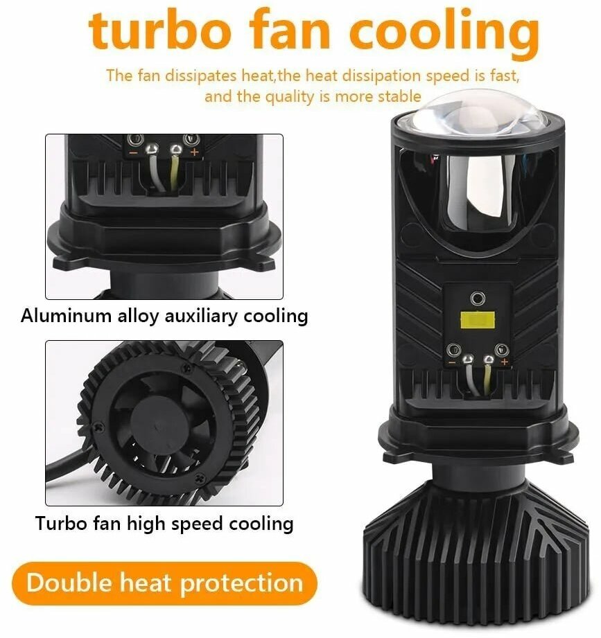 Лампа LED автомобильная с линзой, модель Y6 (обновленная Y9) светодиодная H4, CANBUS, комплект 2шт.