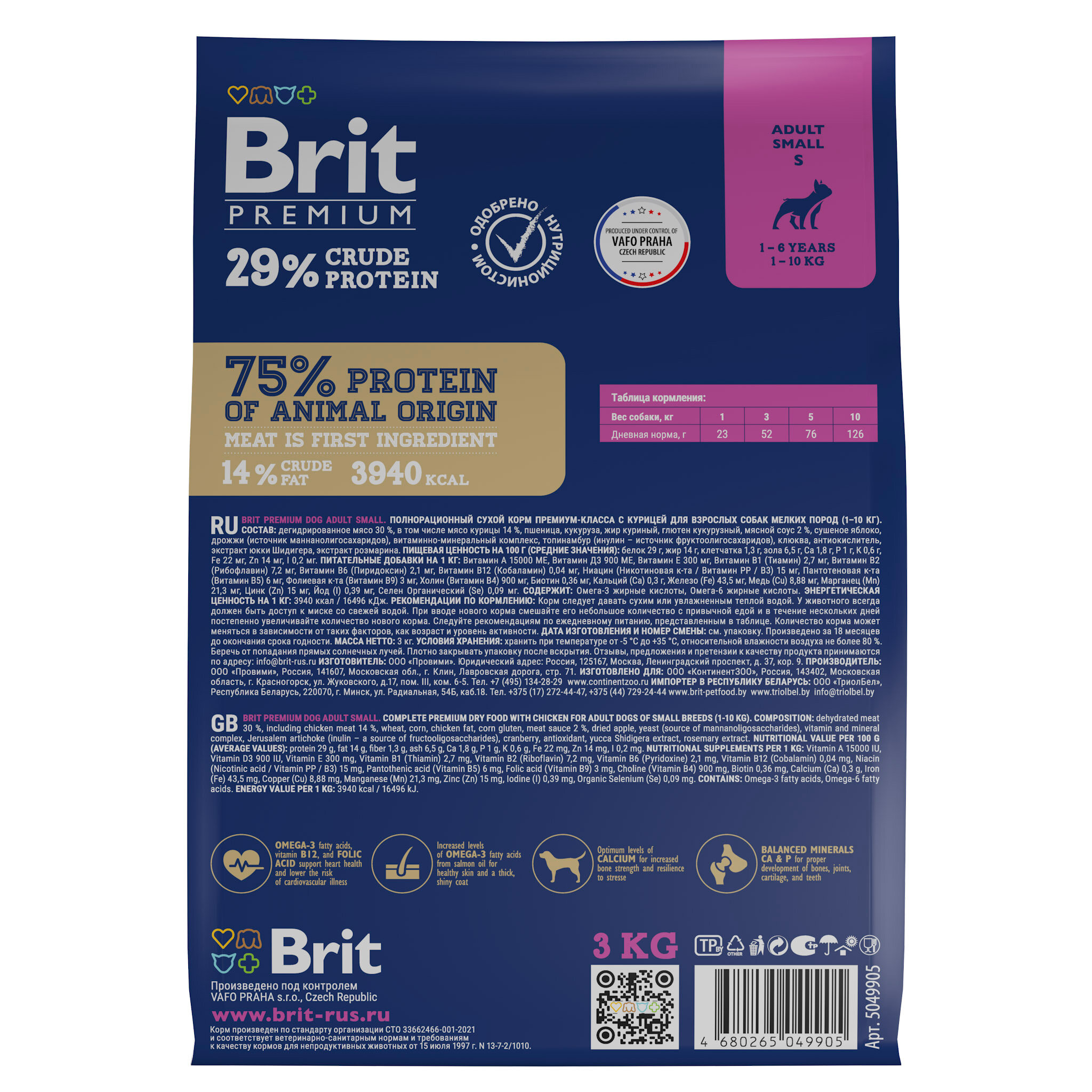 Брит Premium Dog Adult Small 5049905 с курицей д/взрослых собак мелких пород (110 кг), 3кг .