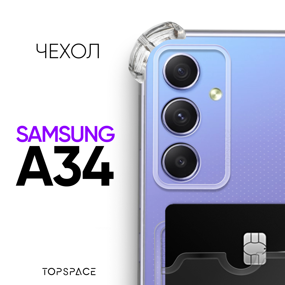 Отзывы на Чехол №05 для Samsung Galaxy A34 / Прозрачный противоударный бампер с карманом для карт и защитой углов для Самсунг Галакси А34 / Самсунг Гелекси