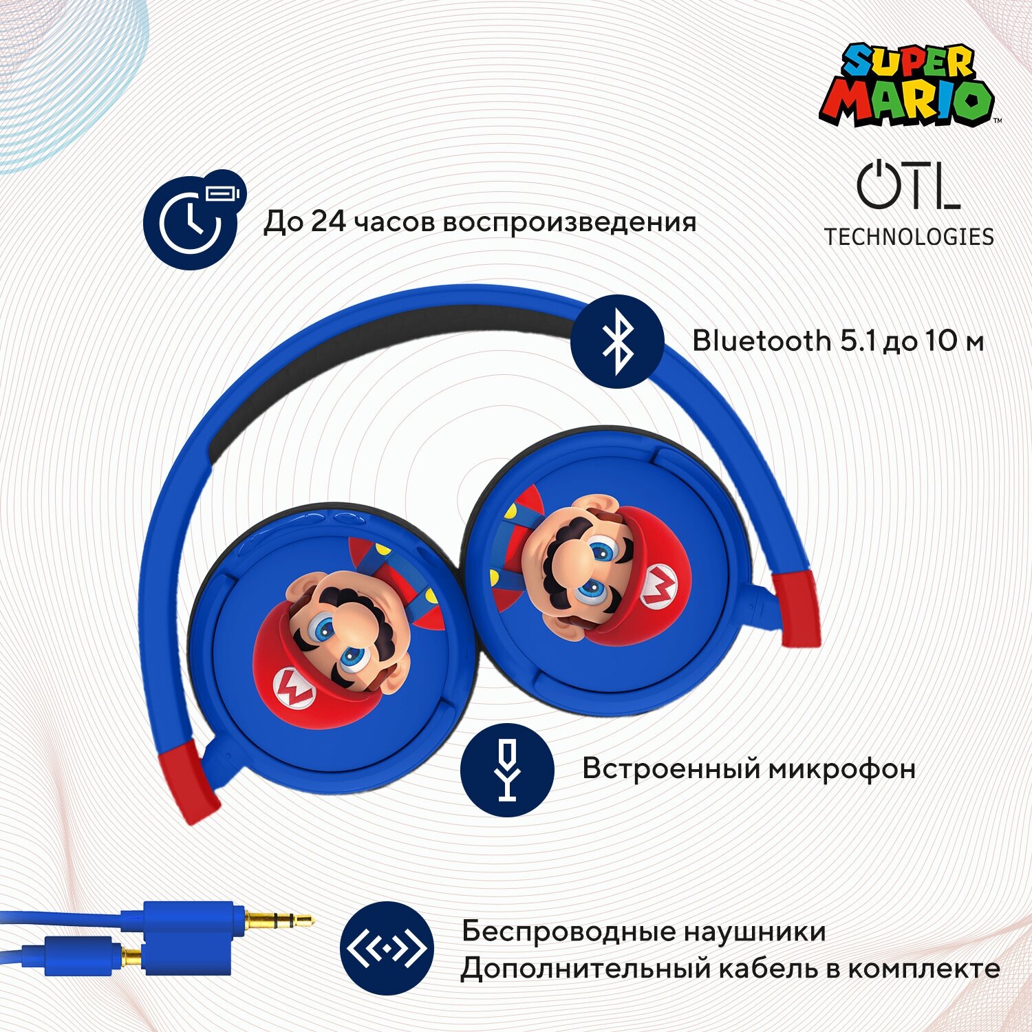 Детские беспроводные наушники Mario, синий информация: