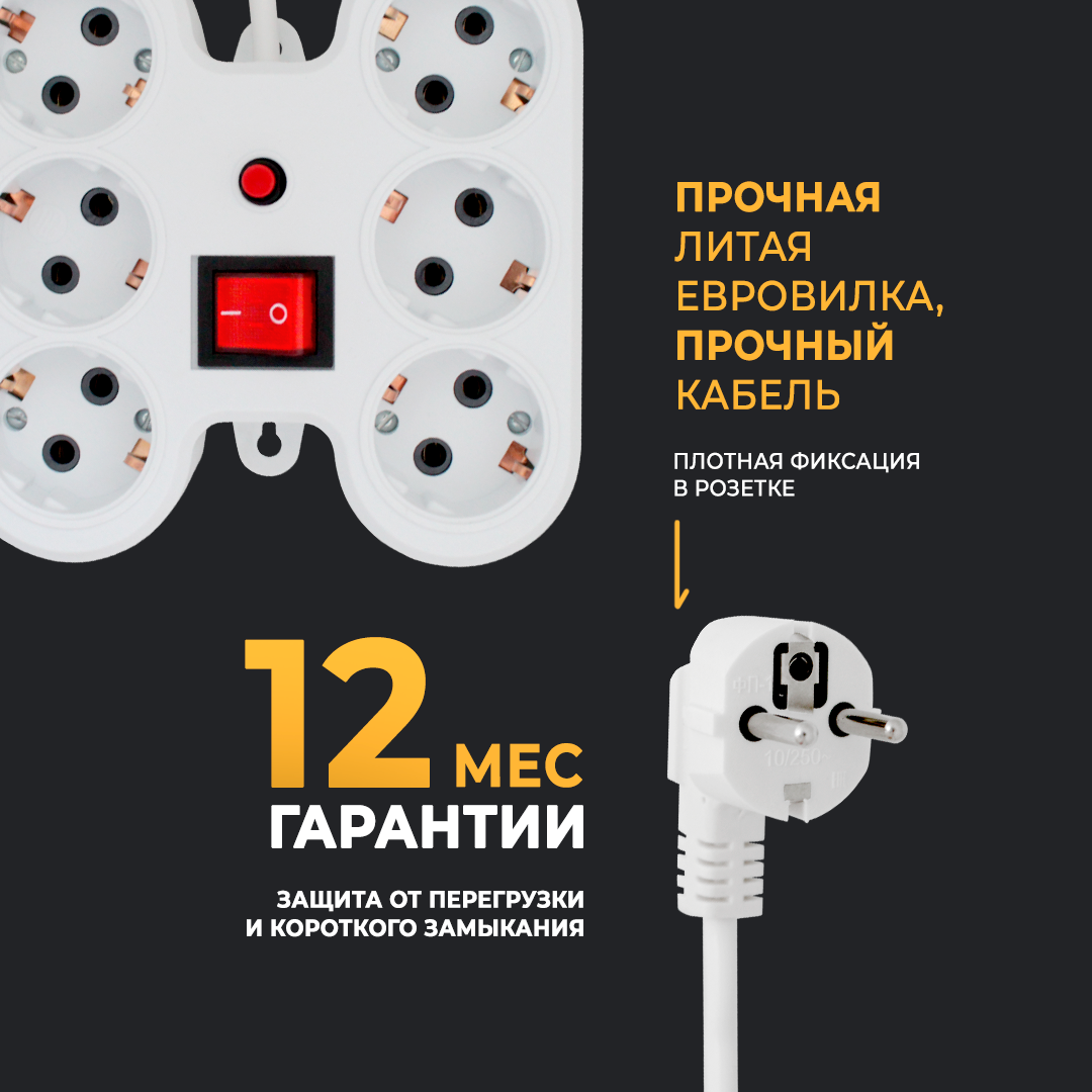 10 цен на Удлинитель сетевой фильтр PG 6 гнезд / розеток, 2 метра, с заземлением, с выключателем, белый, 10 А, 2000 Вт, без USB, 2 м