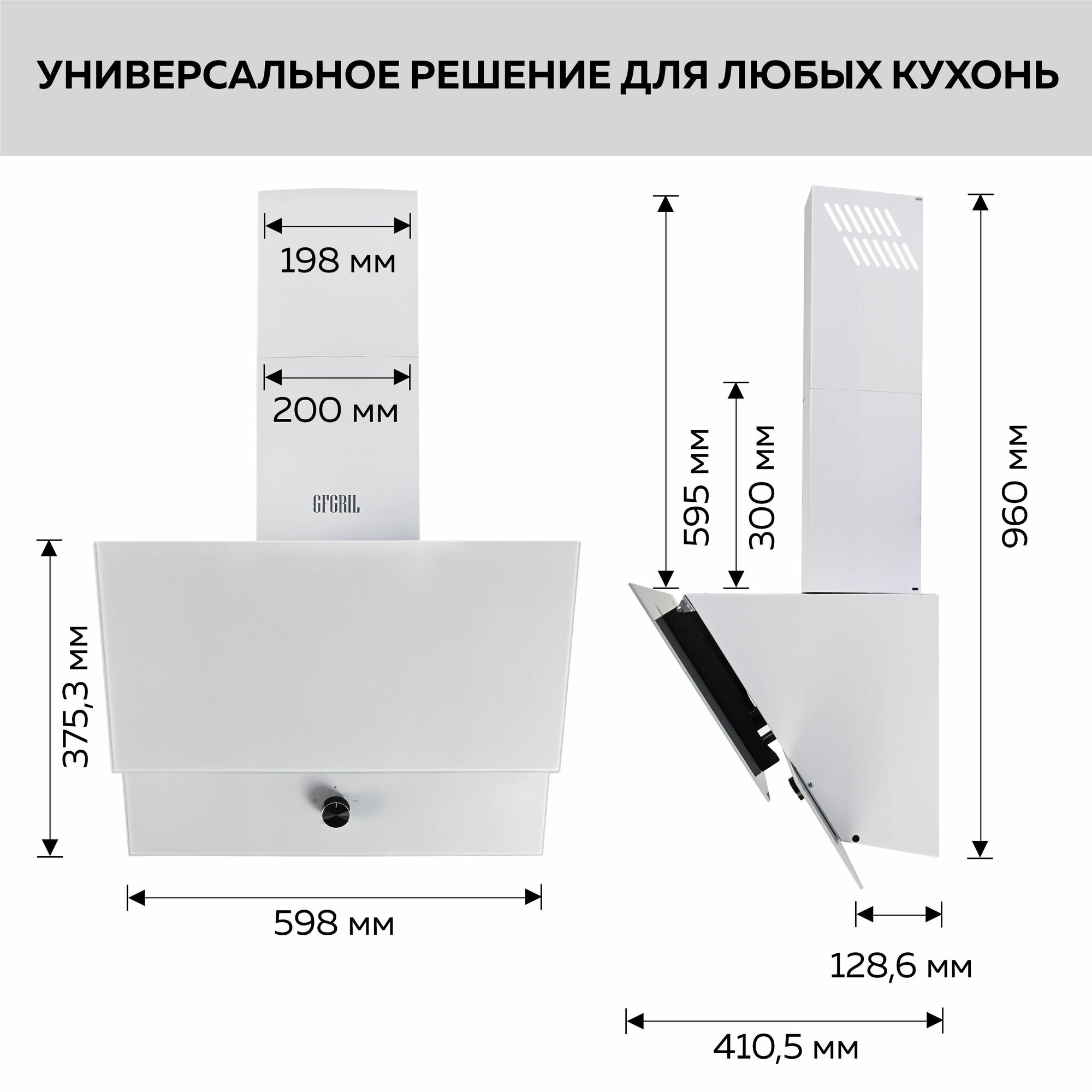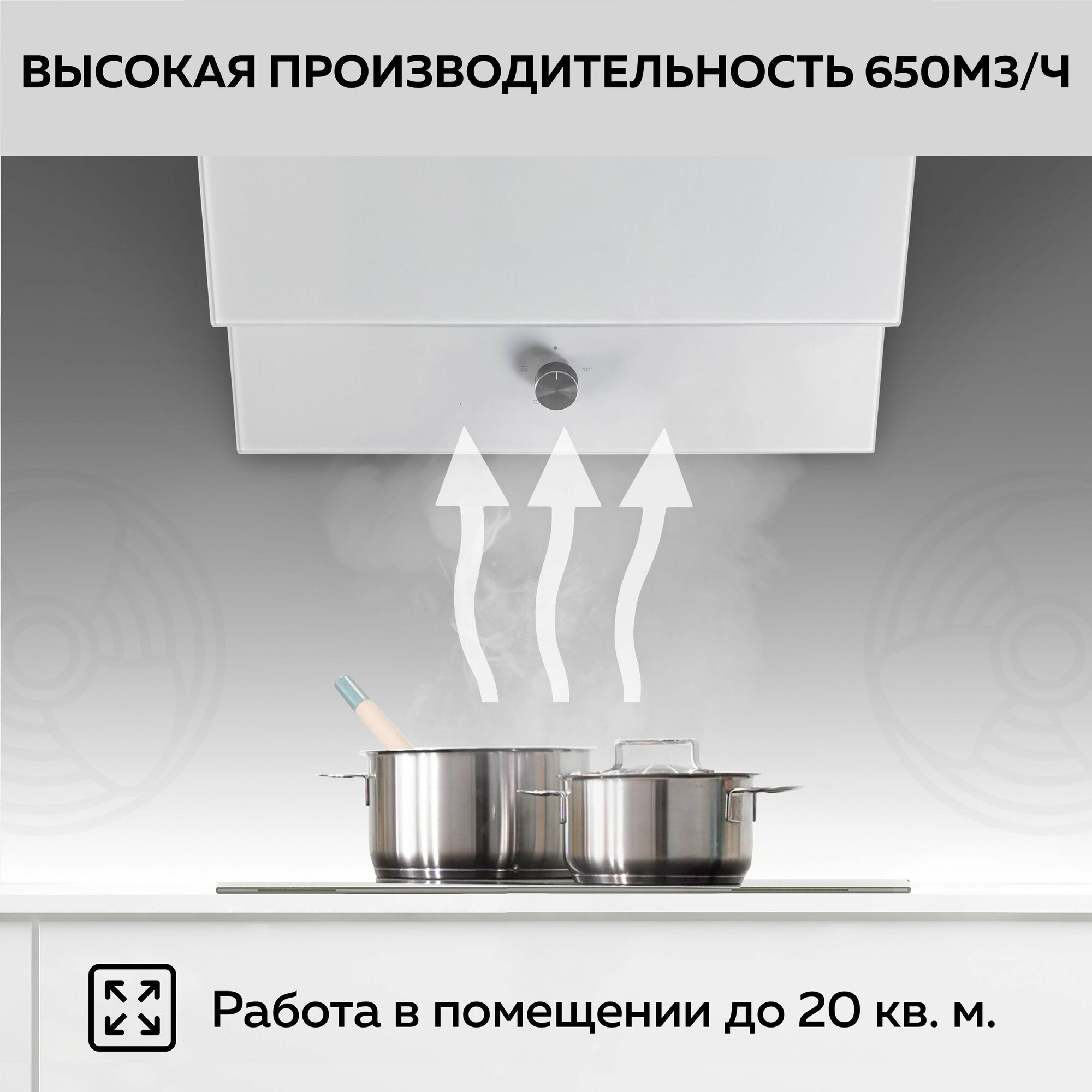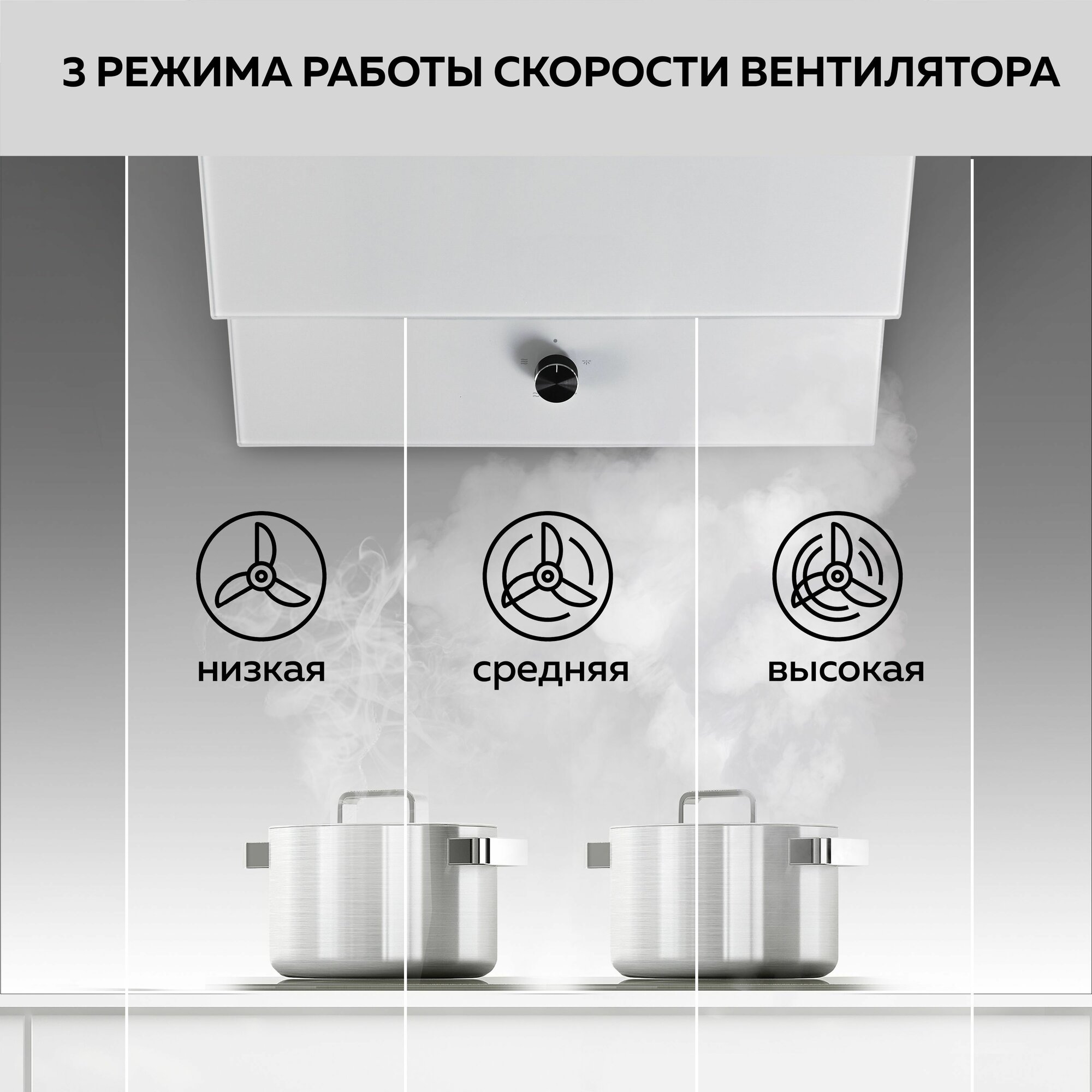 10 цен на GFGRIL Вытяжка кухонная GF-HD200SW, 60 см, 2 стекла, 650 м3/h, 140 Вт, 3 скорости, цвет - белый