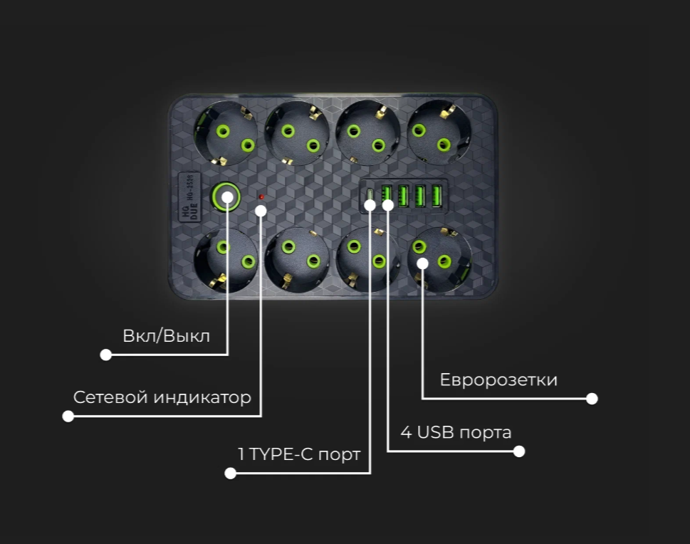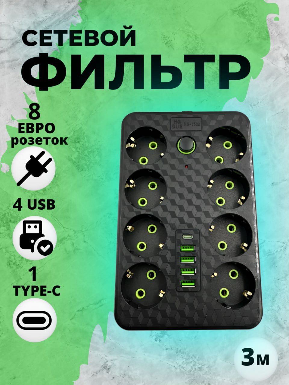Сетевой фильтр SUPERNOWA с 8 розетками 4 USB + 1 Type-C / Многофункциональный удлинитель с предохранителем информация: