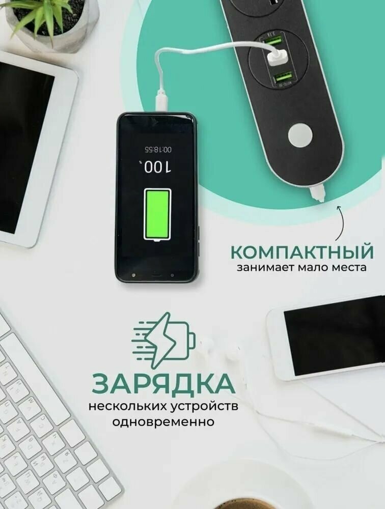 10 цен на Сетевой фильтр с выключателем 4 розетки 3 USB - пилот, удлинитель, бытовой