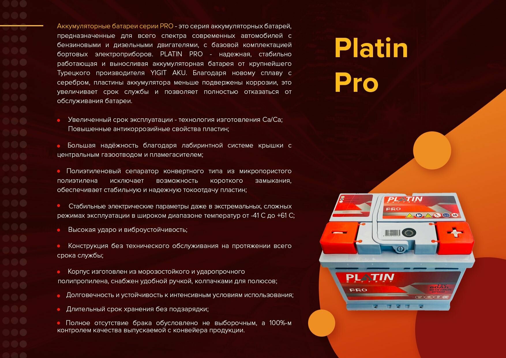 Аккумулятор автомобильный Platin Pro 62 Ач 550 A п. п. SMF L2 242х175х190