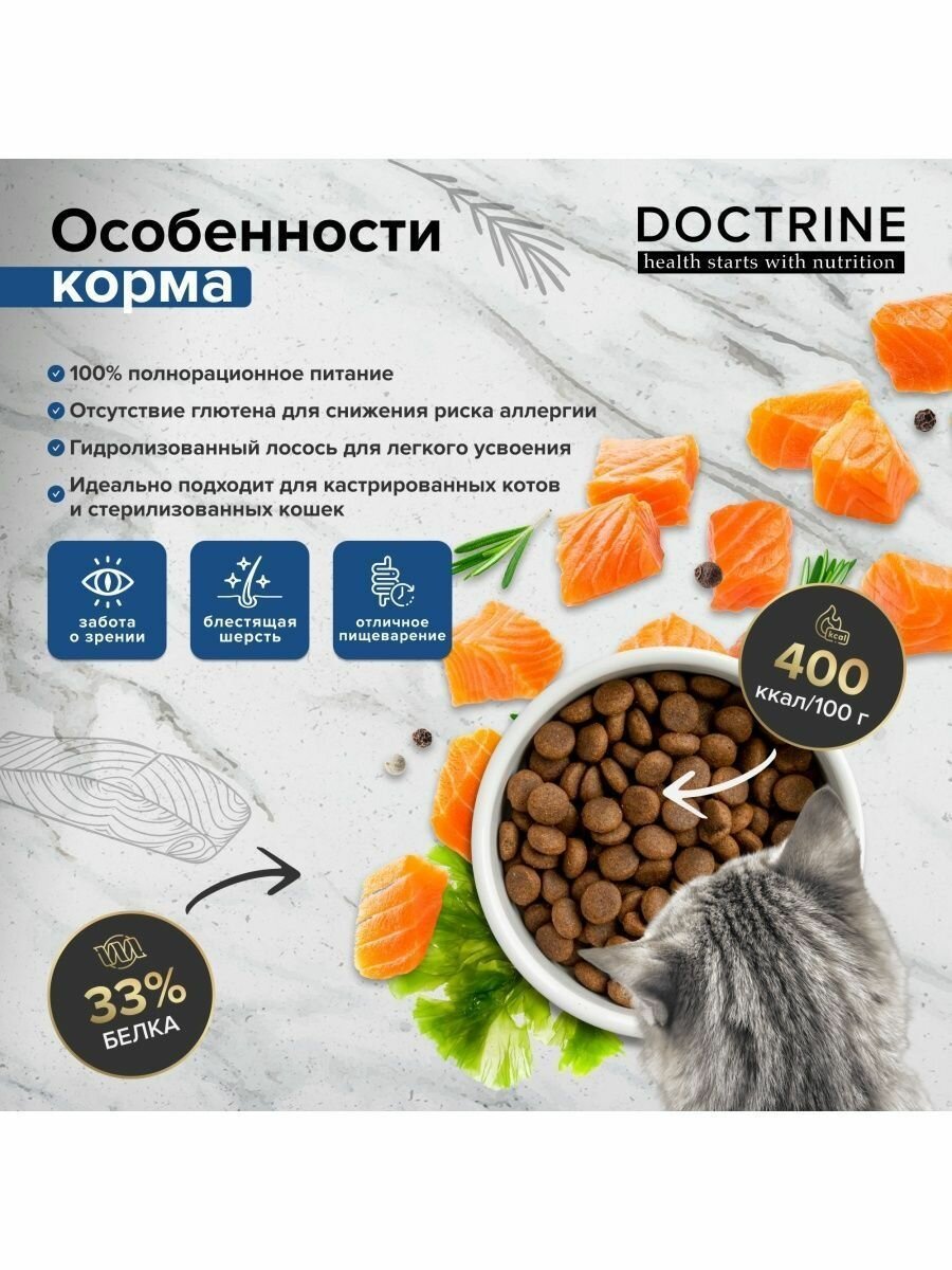 Doctrine Сухой корм для кошек с Лососем и Белой рыбой, 10 кг информация: