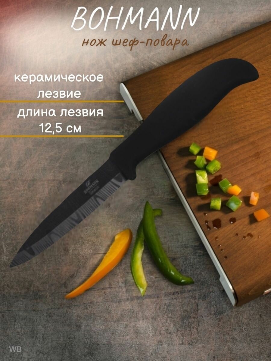 Отзывы на Нож BH - 5237/1 пр-12,5см/керамич. черный лезв. дамасский узор