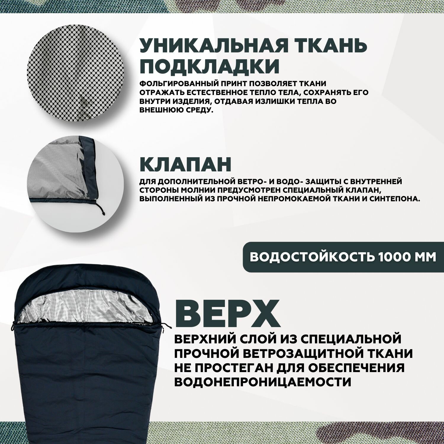Спальный мешок EVERENA Скаут -30C 220x90 см, спальник с подголовником, теплоотражающей подкладкой c компрессионным чехлом, цвет графит информация: