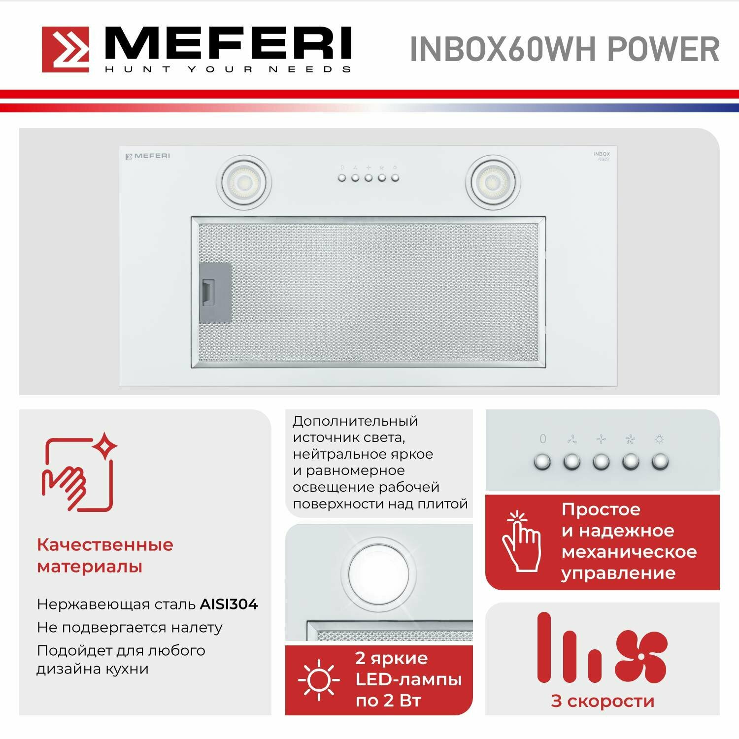 10 цен на Полновстраиваемая вытяжка MEFERI INBOX60WH POWER, белый