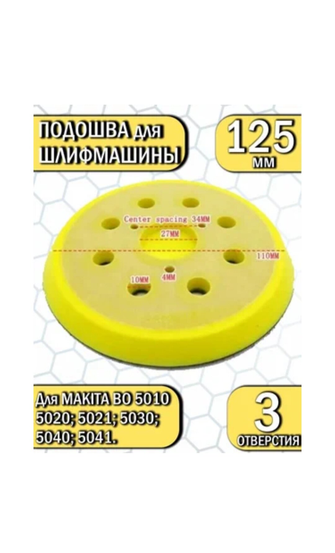 Подошва для эксцентриковых шлифмашин 125 мм 3 отверстия информация: