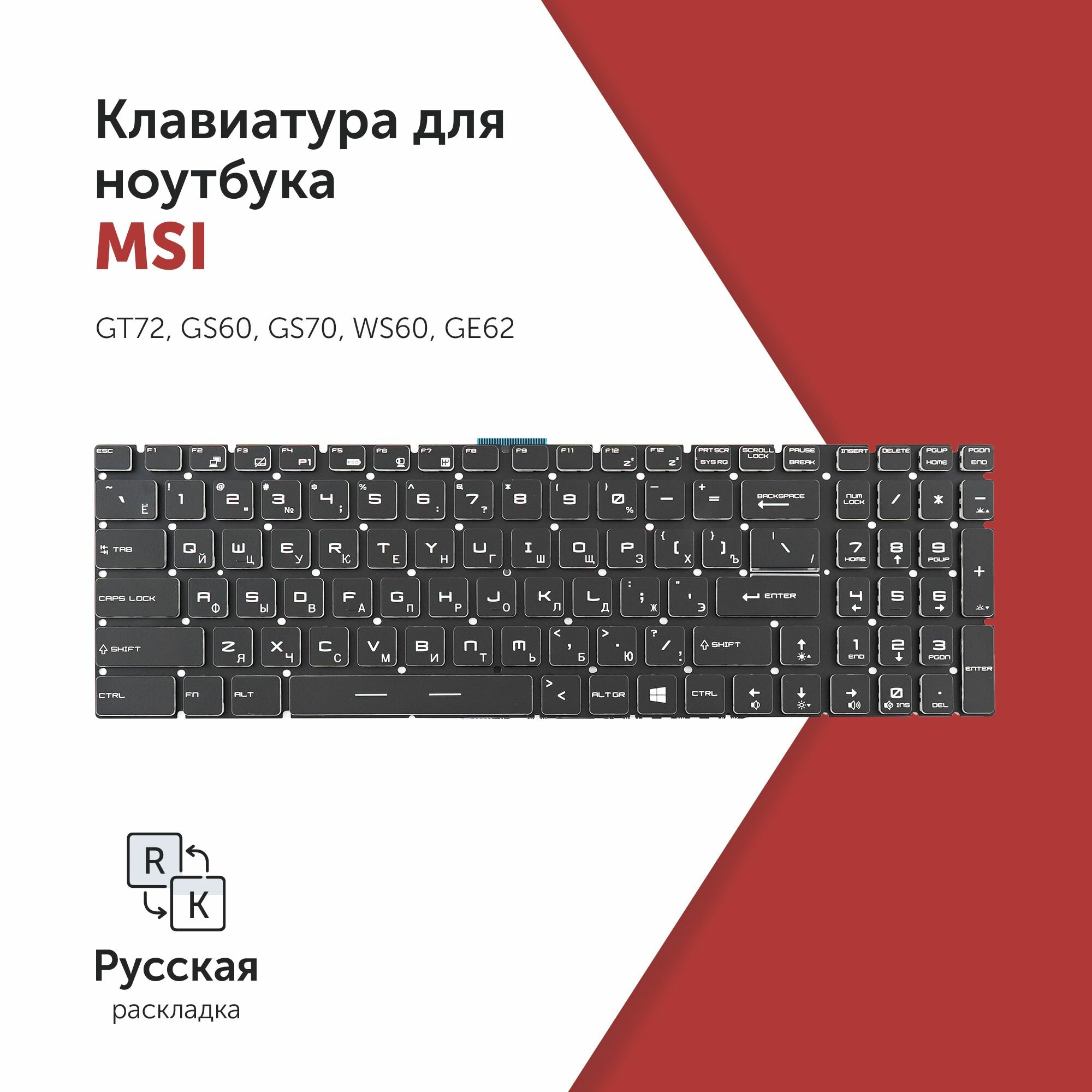 10 цен на Клавиатура для ноутбука MSI GT72, GS60, GS70, WS60, GE62, GE72 черная, без рамки