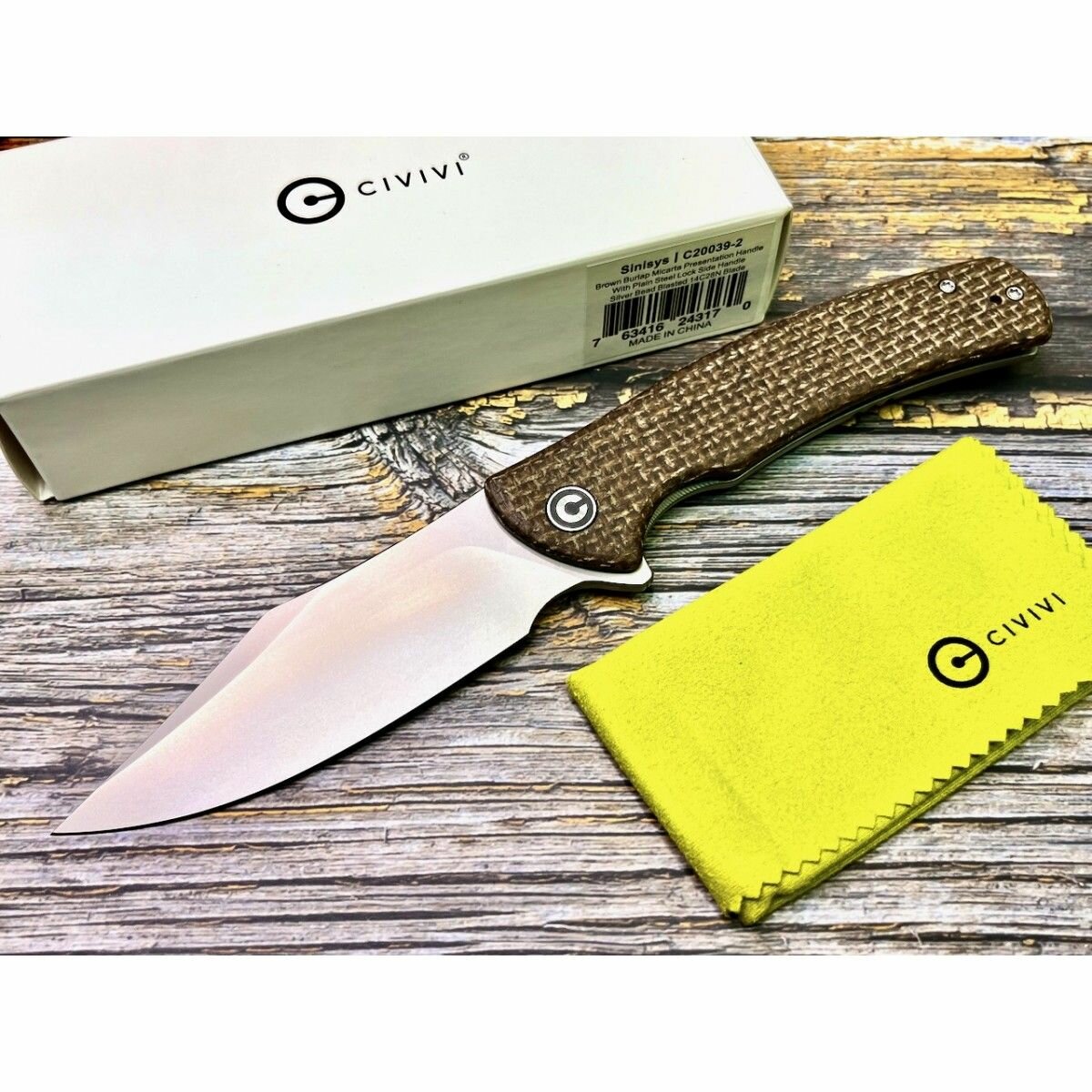 Отзывы на Нож складной Civivi C20039-2 Sinisys, Bead Blasted 14C28N Blade, Brown Burlap Micarta Handle
