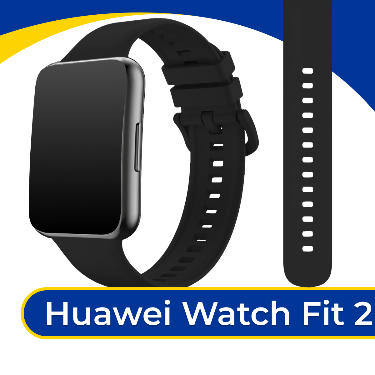 Силиконовый ремешок с застежкой на смарт часы Huawei Watch Fit 2 / Спортивный сменный браслет для умных часов Хуавей Вотч Фит 2 / Черный информация: