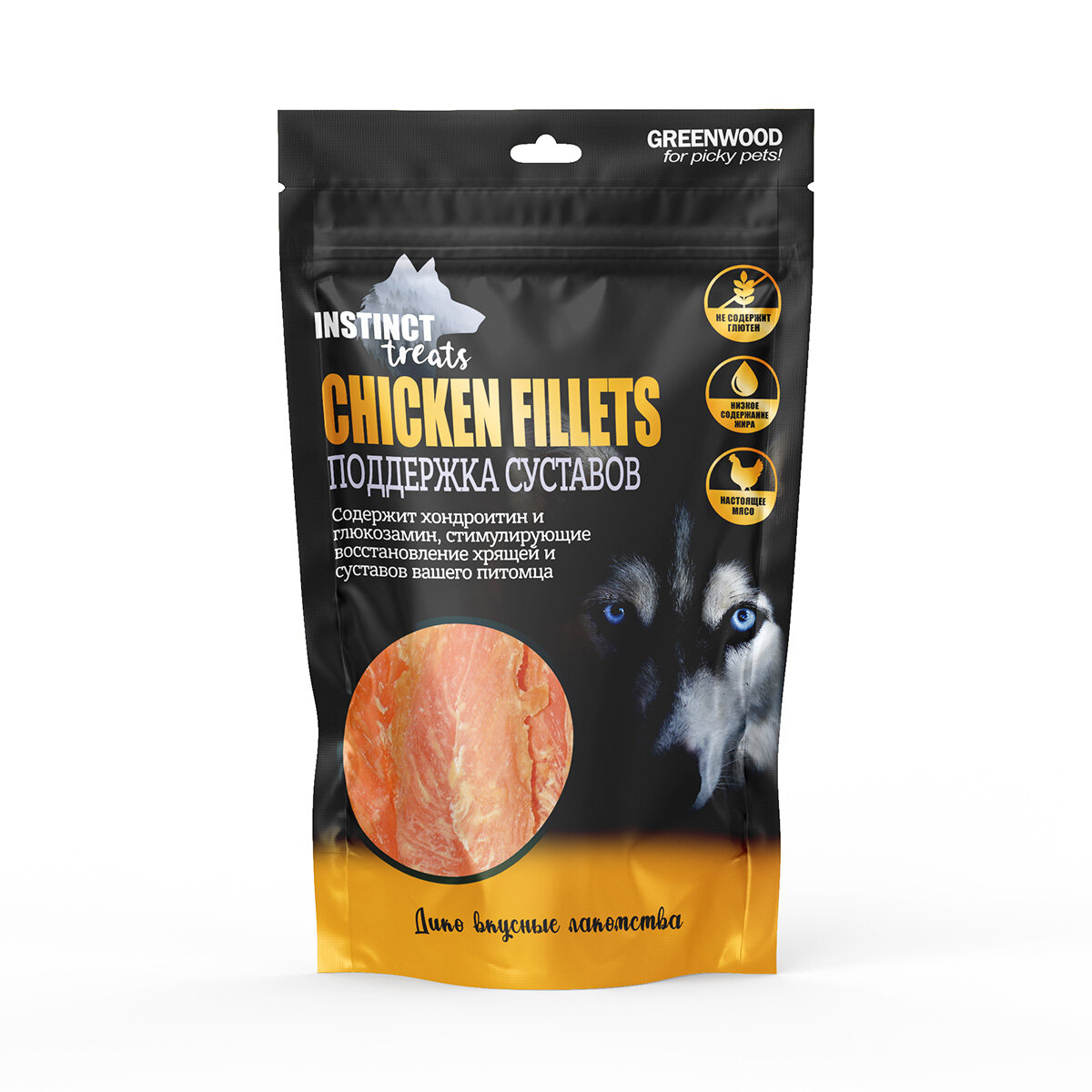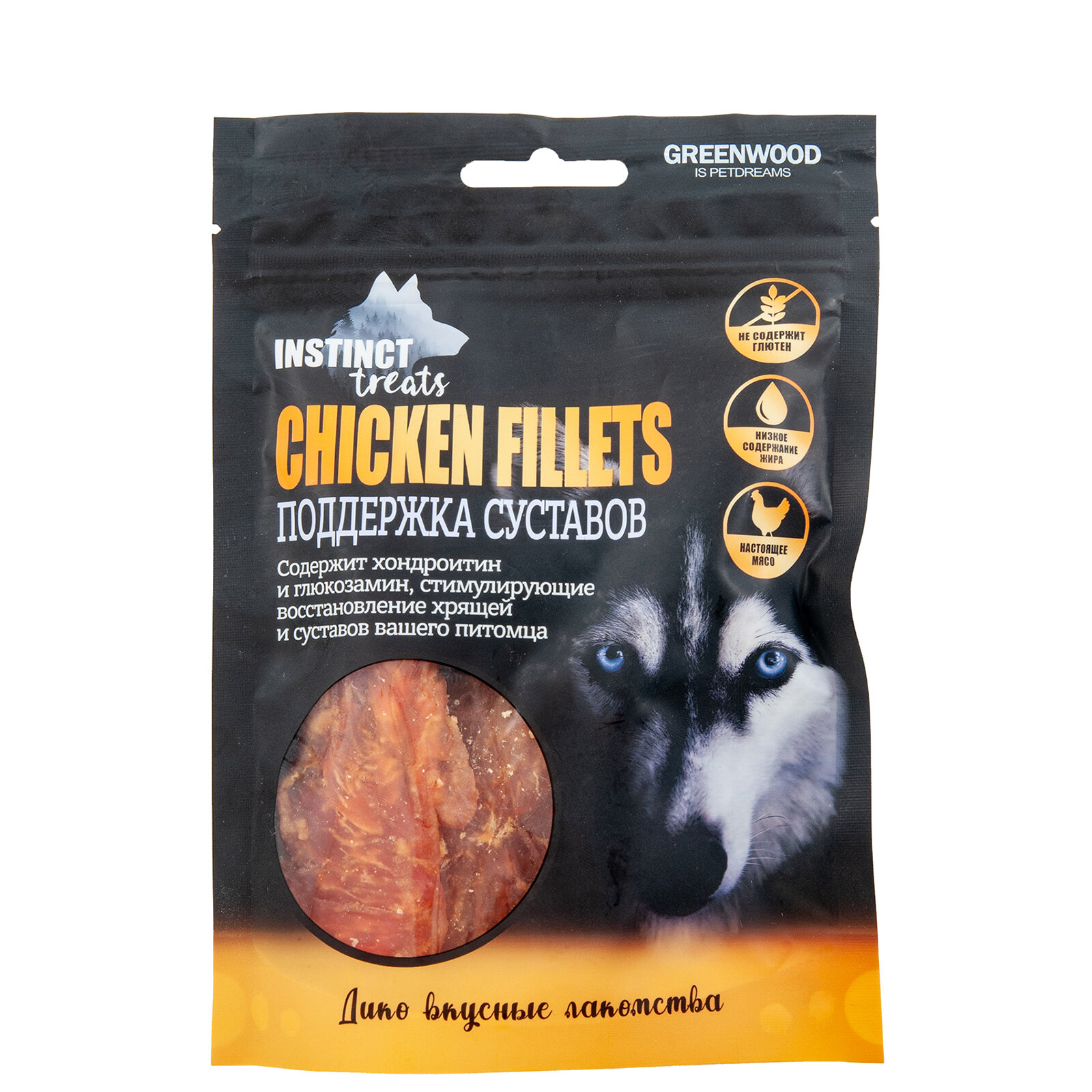 Лакомство для собак GREENWOOD INSTINCT TREATS "Куриное филе. Поддержка суставов", ломтики, 80гр информация: