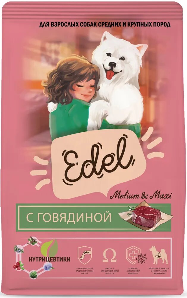 Корм сухой для собак средних и крупных пород Edel с говядиной, 12 кг Эдель 6 065 ₽