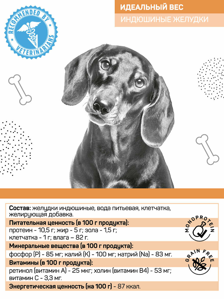Влажный корм для собак, Zoodiet Perfect Weight, Желудочки индюшиные, 12шт по 240гр 2 053 ₽