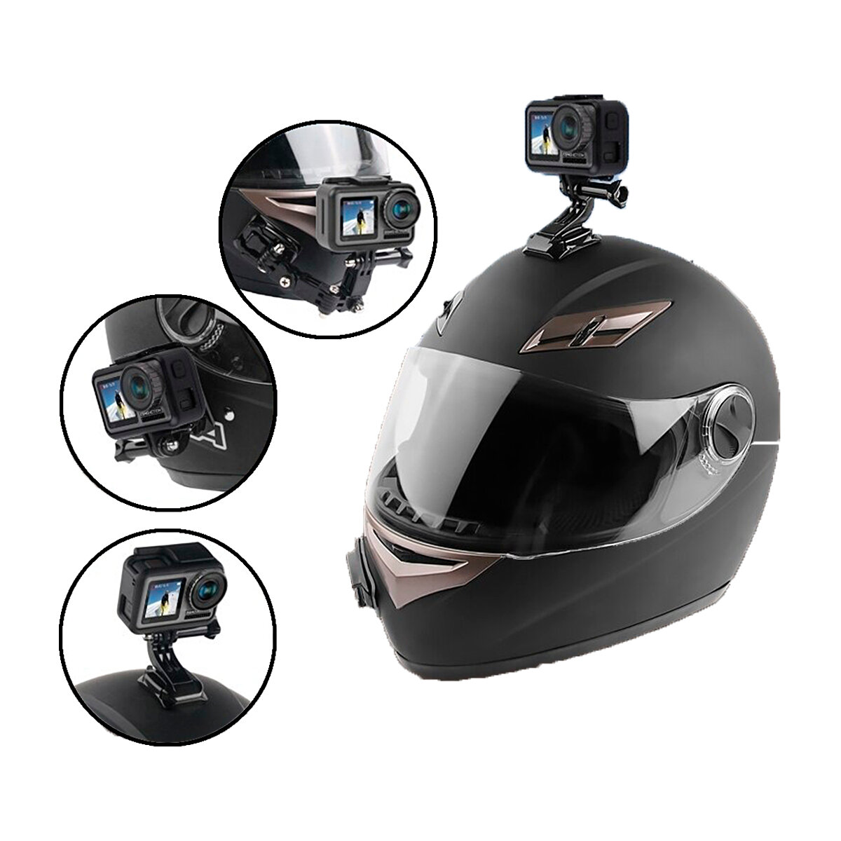 10 цен на Комплект креплений экшн-камеры на шлем на мотоцикл скутер квадроцикл мопед для мотоциклиста, черный