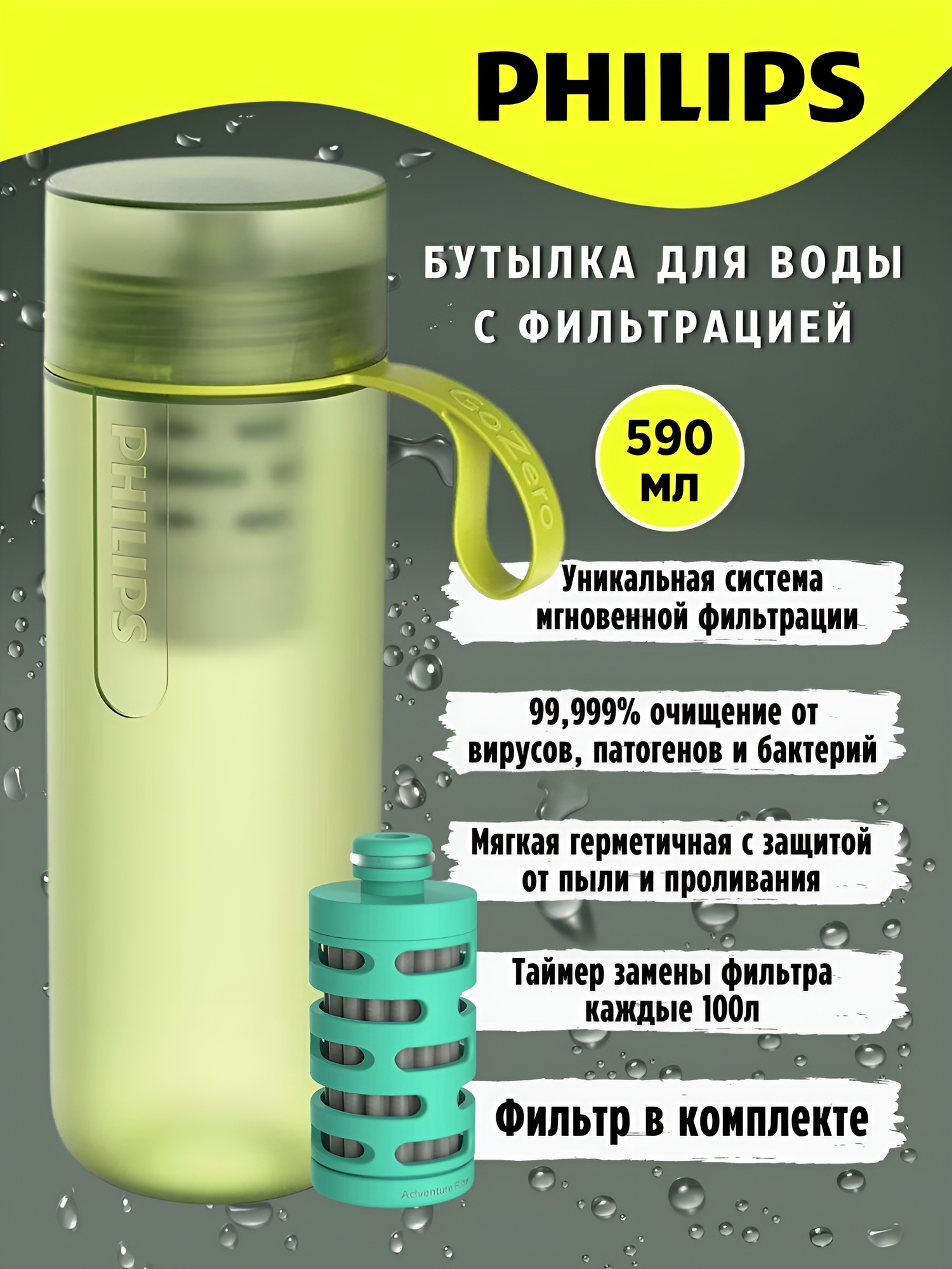 Бутылка для воды с фильтром фитнес спорт PHILIPS GoZero AWP2722LIR 58 Adventure 590ml лайм1 информация: