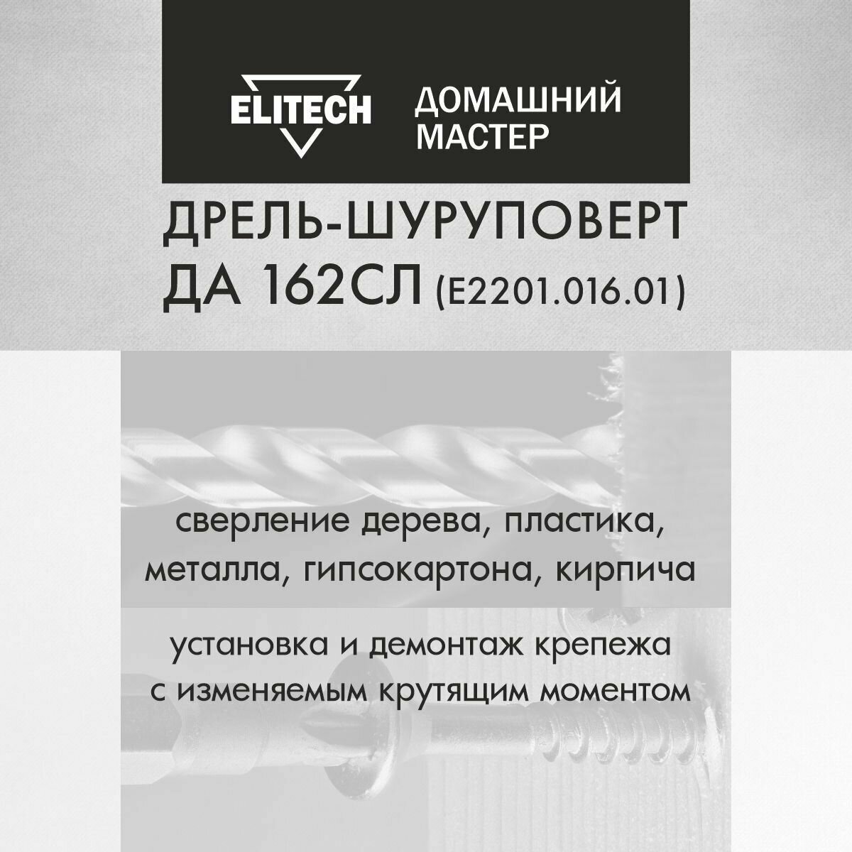 Дрель аккумуляторная Elitech ДА 202СЛ E2201.017.01