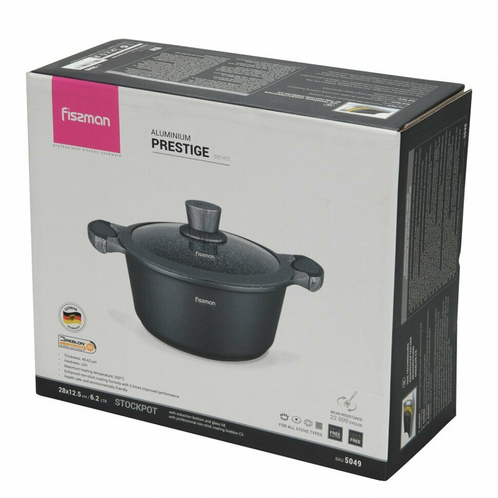 10 цен на Кастрюля с крышкой FISSMAN PRESTIGE 28x12.5см/6.2л, алюминий, стекло