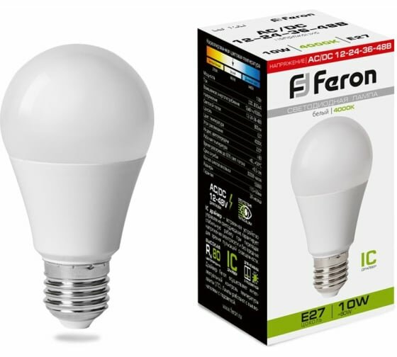 Отзывы на Лампа светодиодная низковольтная LED 10вт 12-48V E27 4000K A60, LB-192 Feron