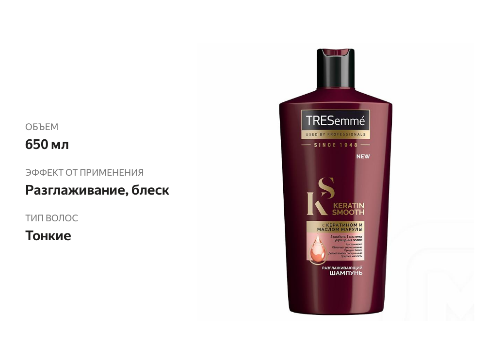 Шампунь для волос TRESEMME Keratin smooth разглаживающий с кератином и маслом марулы, 400мл, Россия, 400 мл информация: