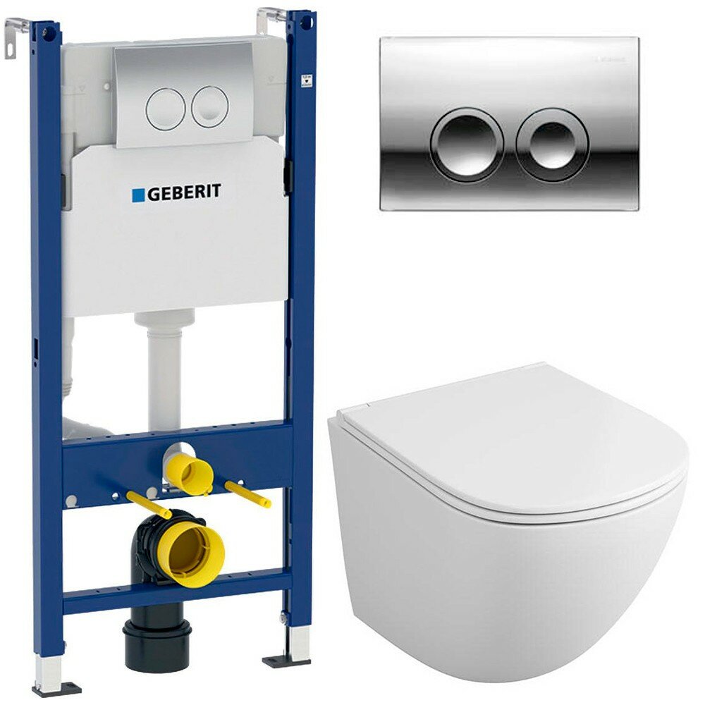 Инсталляция Geberit 111.154.11.1 + кнопка смыва Delta01 115.107.11.1 + унитаз Teymi Lina S T40102 безободковый с сиденьем