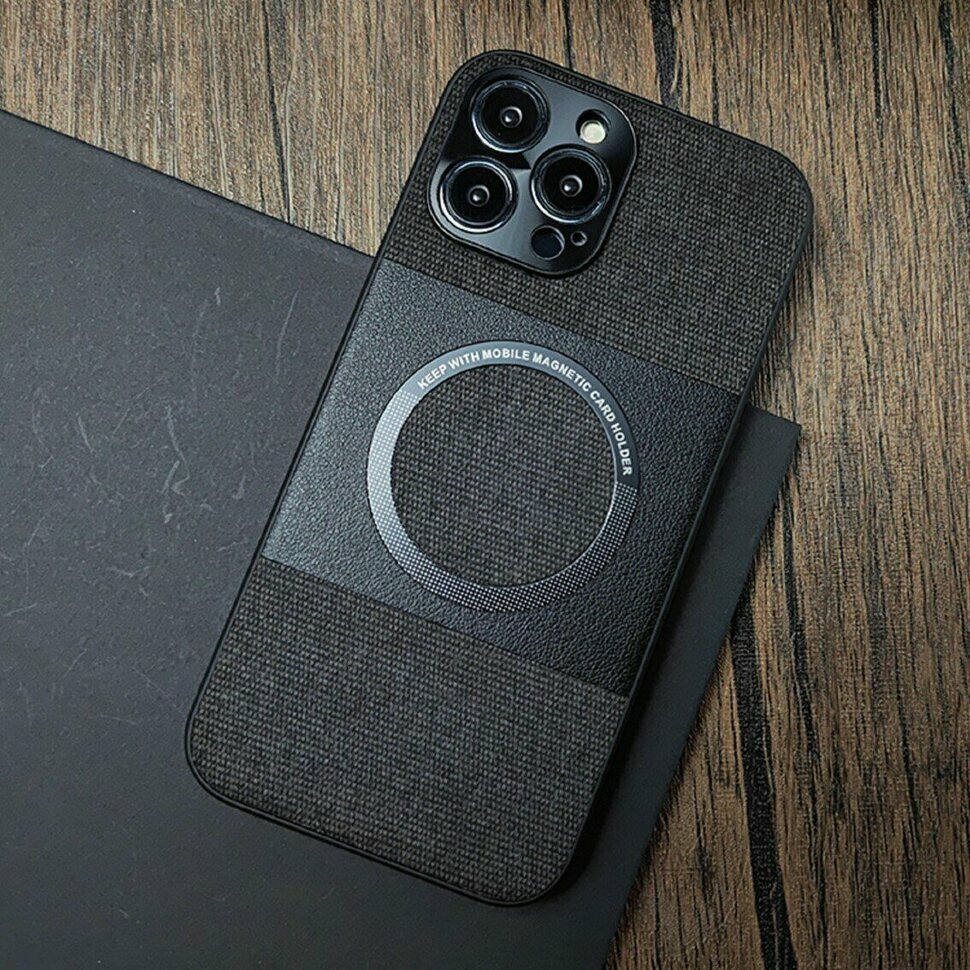 Тканевый чехол Electroplated MagSafe для iPhone 14 Plus (черный) информация:
