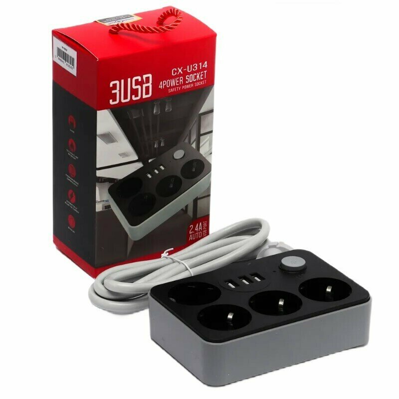 Фильтр сетевой удлинитель CX-U314 с USB-разъемами информация: