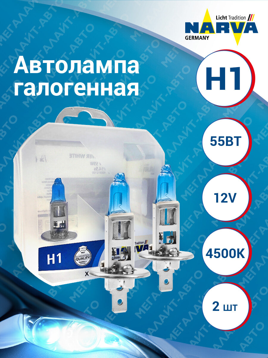 Отзывы на Автолампа NARVA H1 55 P14.5s RANGE POWER WHITE 4500K 486412100