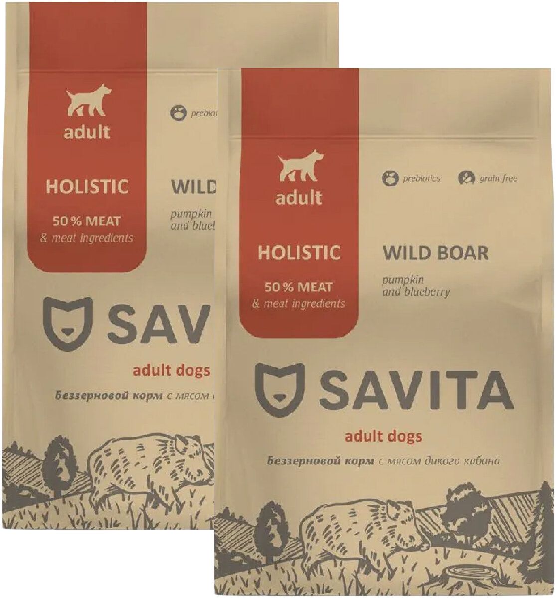 10 цен на SAVITA ADULT DOGS WILD BOAR беззерновой для взрослых собак с мясом дикого кабана (1 + 1 кг)
