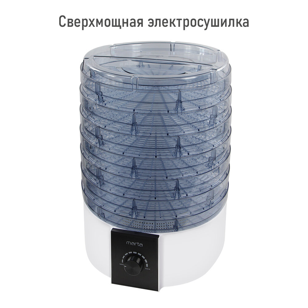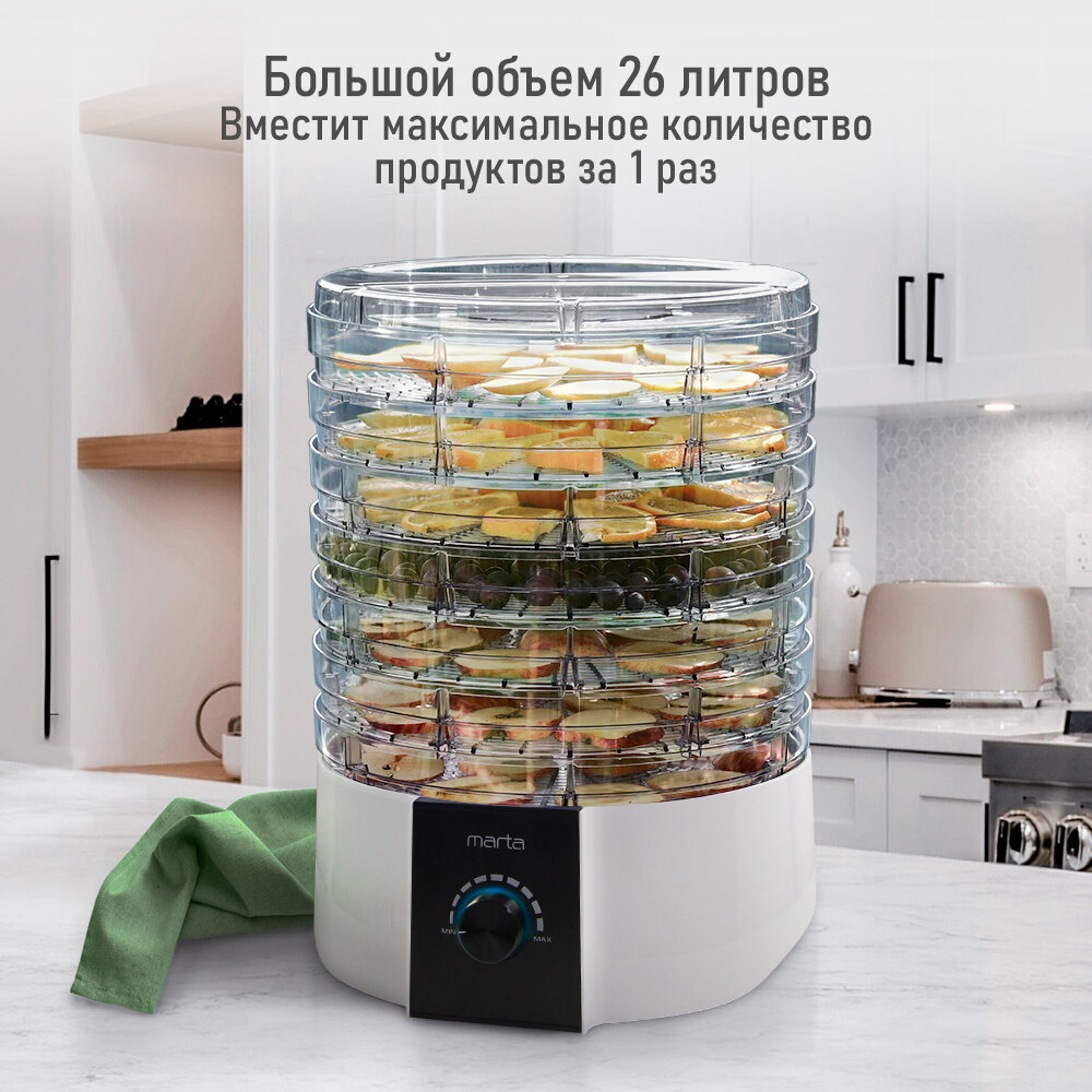 10 цен на Электросушилка MARTA MT-FD1889D 9 поддонов (7+1 для пастилы+1 для ягод) белый жемчуг