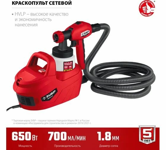 Краскопульт Зубр КПЭ-650, 0.8л, 0-700мл/мин, 1.8мм, 650Вт