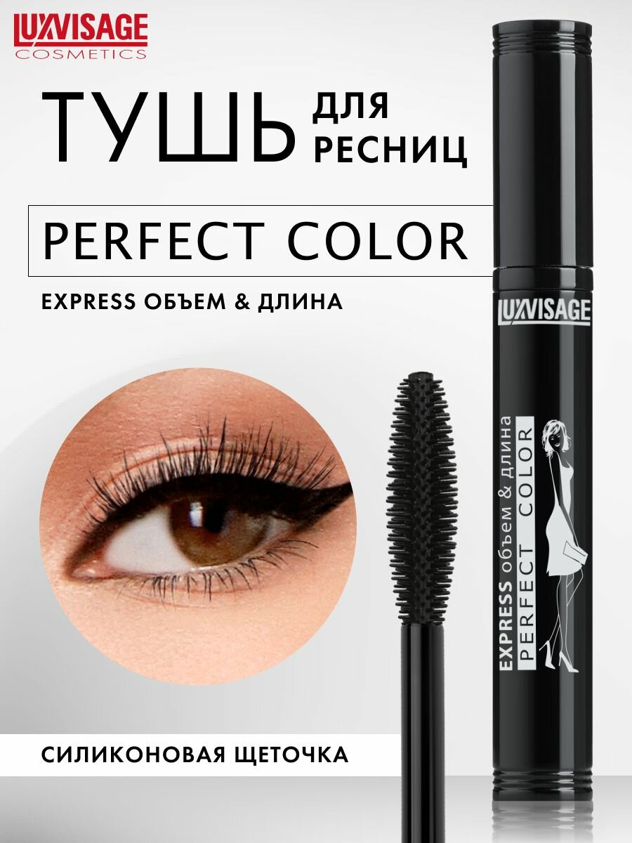 LUXVISAGE / Люксвизаж Тушь для ресниц Perfect Color Express черная с силиконовой щеточкой 9г / средство для удлинения и объема